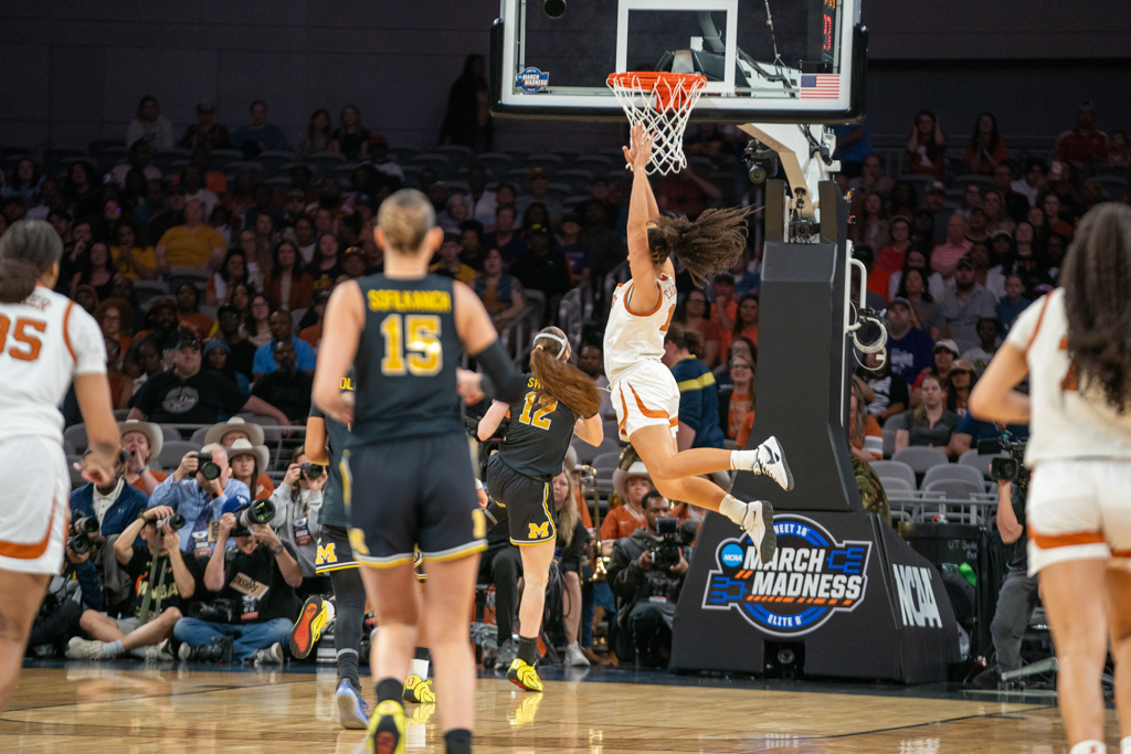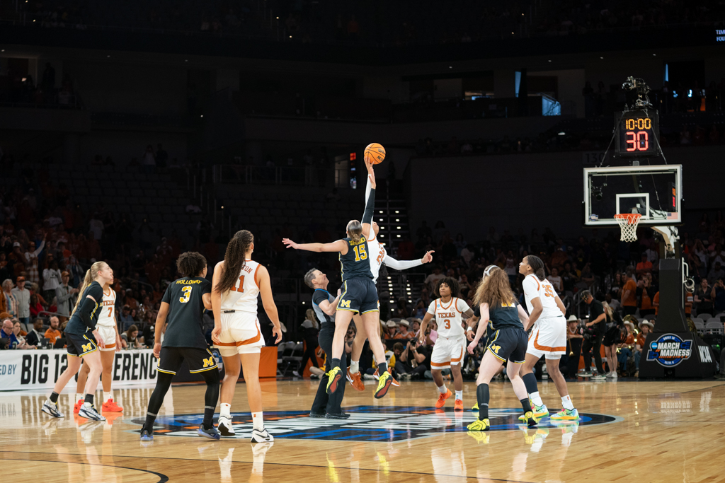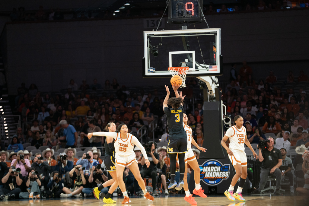 The No. 2-seeded and ninth-ranked University of Michigan women’s basketball team saw its NCAA Tournament journey come to an end Monday night (March 30), falling 77–41 to top-seeded and third-ranked Texas at Dickies Arena.