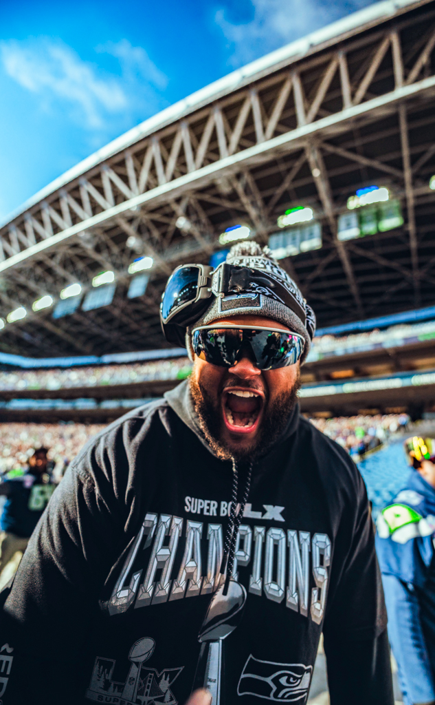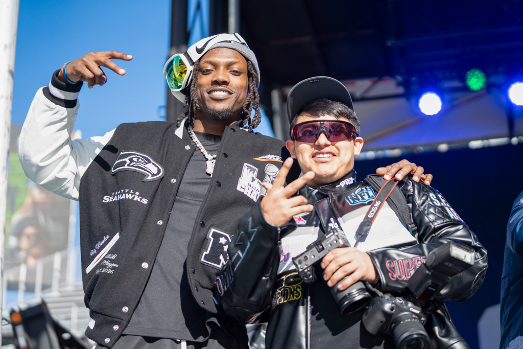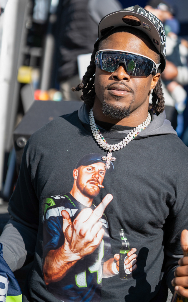 The day kicked off with confetti, fireworks, and chants of “MVP” raining down on Kenneth Walker III, who humbly shook his head as he took in the moment. Players walked onto the field alongside their families, some with cigars or drinks in hand, greeted by a massive “2025 World Champions” display and a sea of roaring 12s.