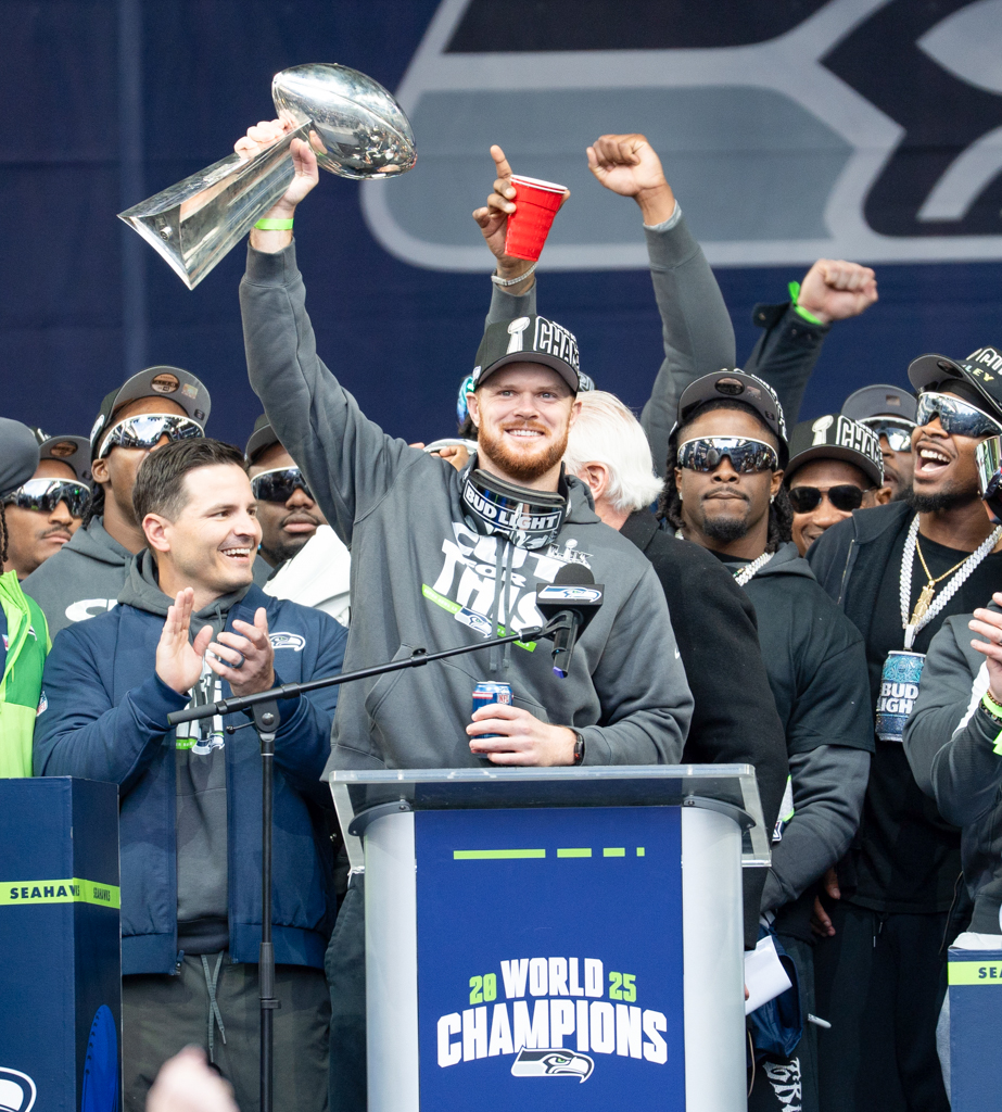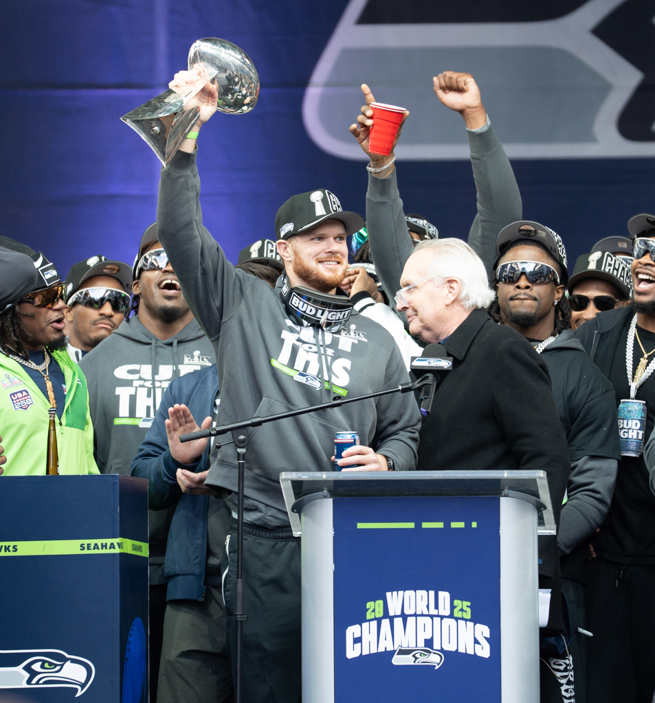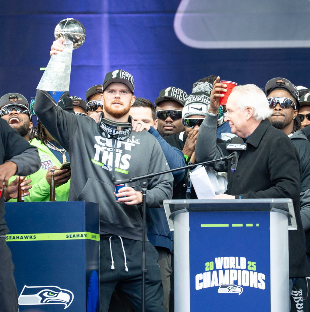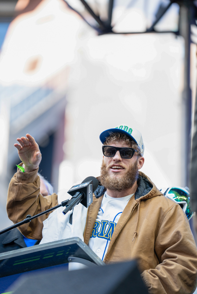 Several players addressed the fans, including Sam Darnold, Jarran Reed, Devon Witherspoon, Ernest Jones IV, and Cooper Kupp. Ernest Jones IV delivered the most fiery speech of the day, fiercely defending his quarterback, his teammates, and the city of Seattle. His passionate words echoed a turning point earlier in the season and symbolized how the team rallied together to finish what they started.